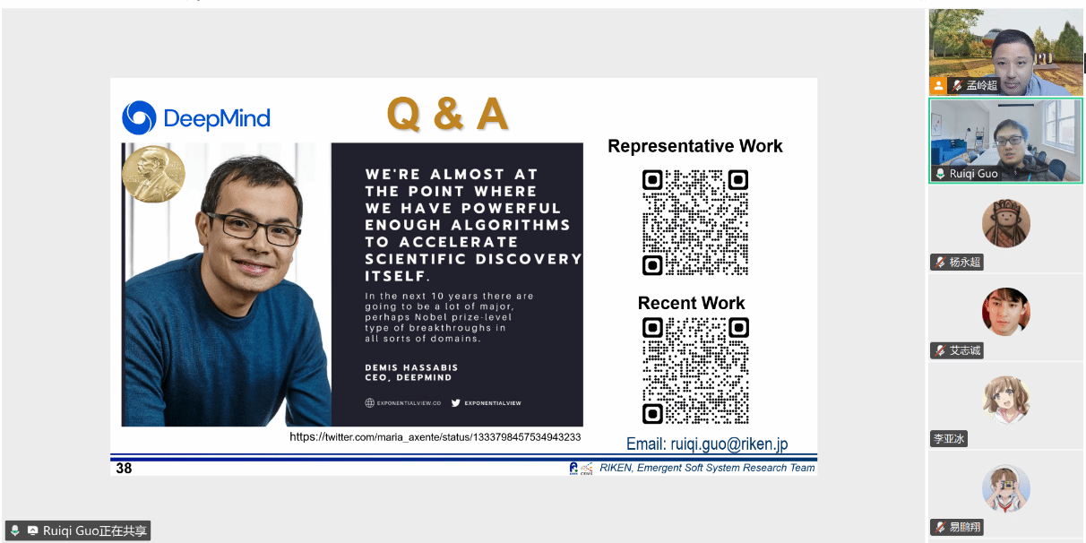 在讲座中,郭博士首先介绍了自己的求学经历和研究方向,随后对机器学习在自由形式结构设计中的应用进行了介绍。他详细介绍了其研究团队提出的一种机器学习逆向设计范式,通过非参数化、拓扑无关的结构表征方式,使神经网络能够直接从数据中学习复杂物理规律,快速精准地替代力学、光学和电磁学的计算。